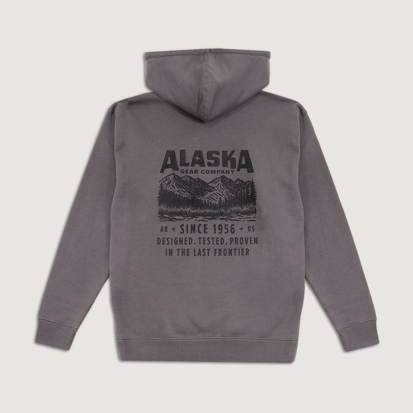 Inspired by Alaska’s vast Chugach National Forest mountain landscapes, the Front Range Hoodie pairs everyday comfort with a bold graphic that reflects the rugged terrain and frontier heritage that define our brand. Built for cold-weather comfort, this hoodie combines a soft cotton-faced exterior with a cozy fleece-lined hood for reliable warmth through the shoulder-season chill and easy layering for cold-weather comfort. Durable stitching, ribbed cuffs, and a braided drawcord ensure lasting performance on the job, on the trail, or around town.