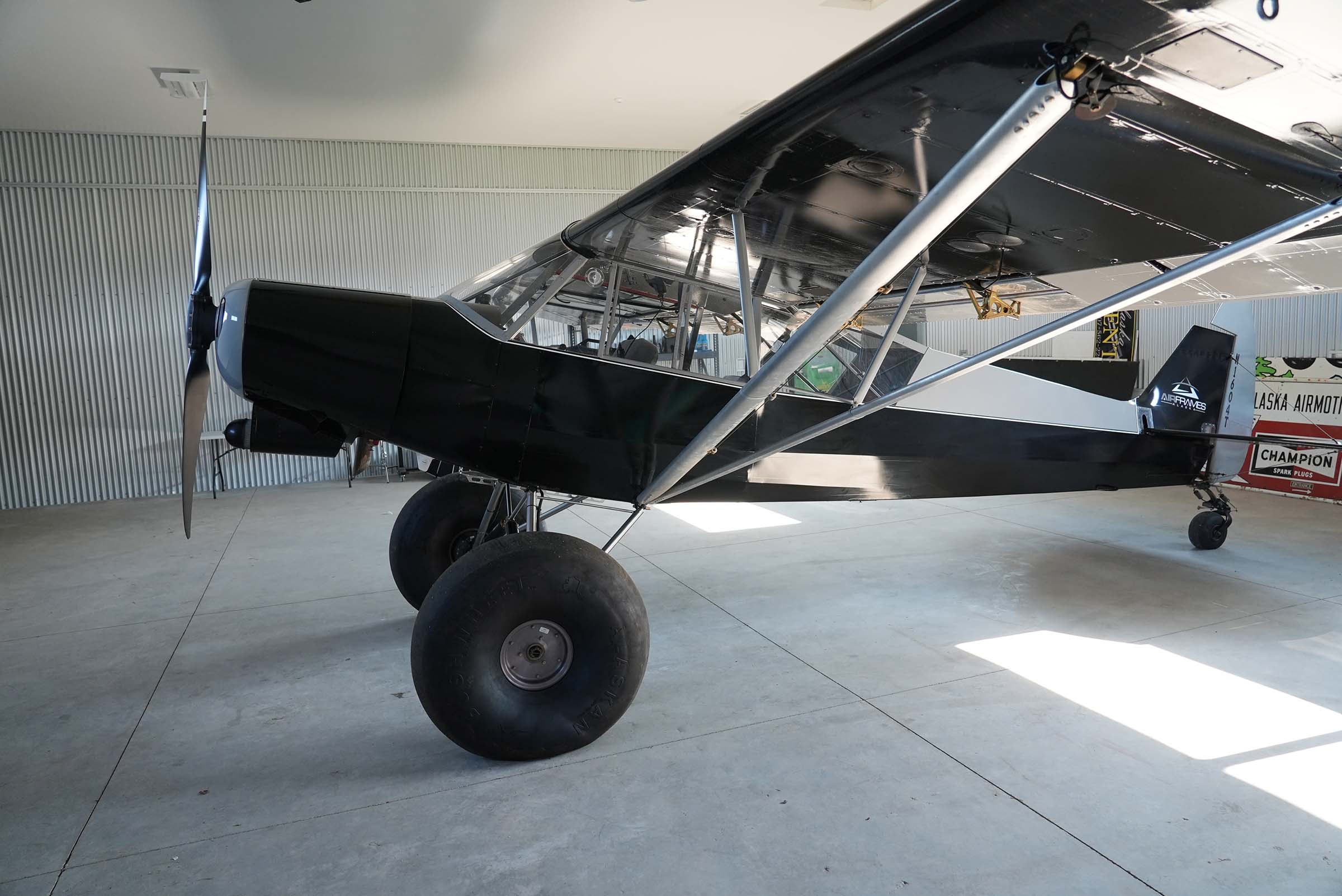 This 2016 Airframes Alaska PA-18-180 (Experimental), N1604T, is a low-time, VFR-ready Super Cub built for serious off-airport performance. It features custom PSTOL flaps, titanium landing gear with Airframes TiSHX suspension, 35” Bushwheels, and a host of premium upgrades. Based in Palmer, AK, it comes with extras like Airglas L2500A skis and is ready for your next backcountry mission.